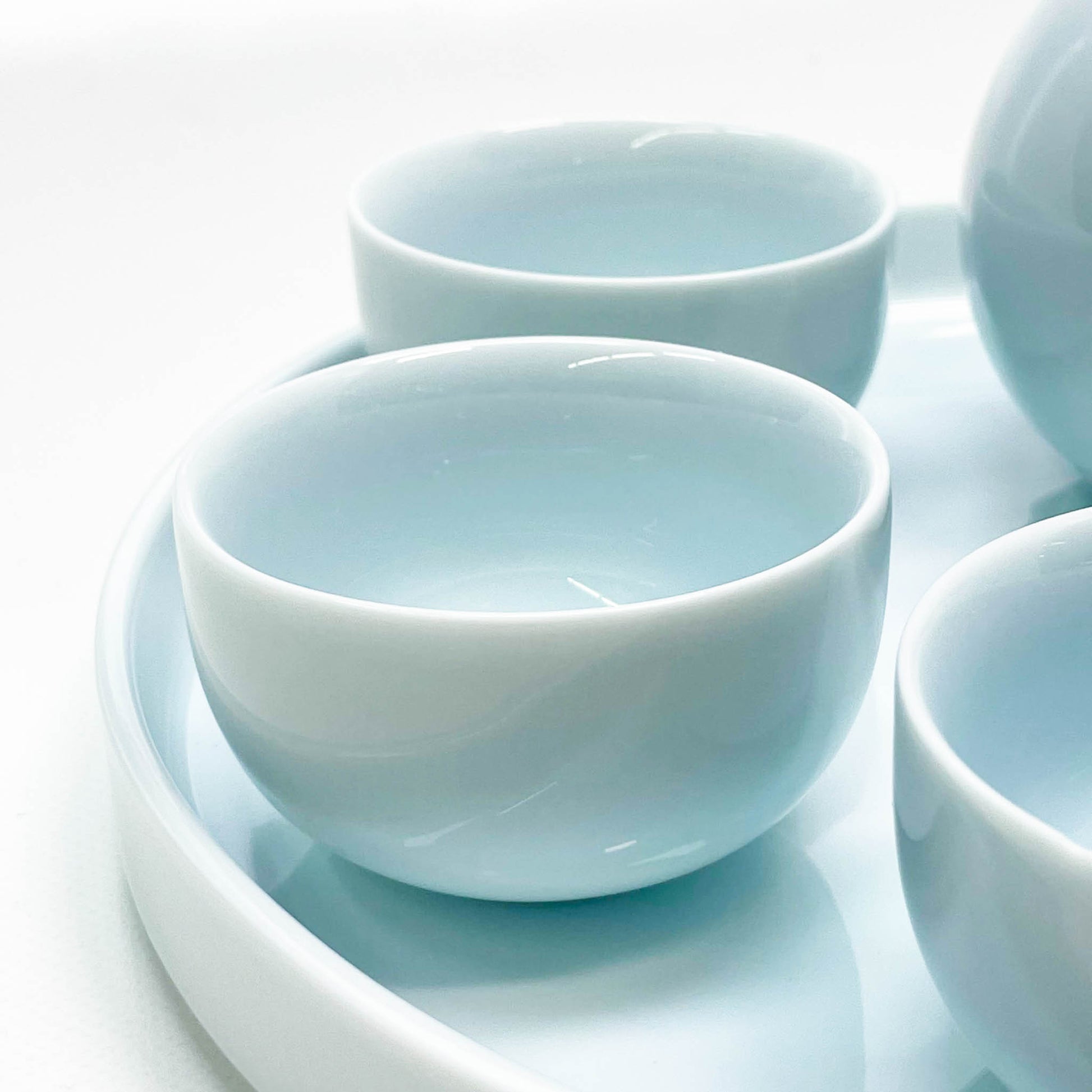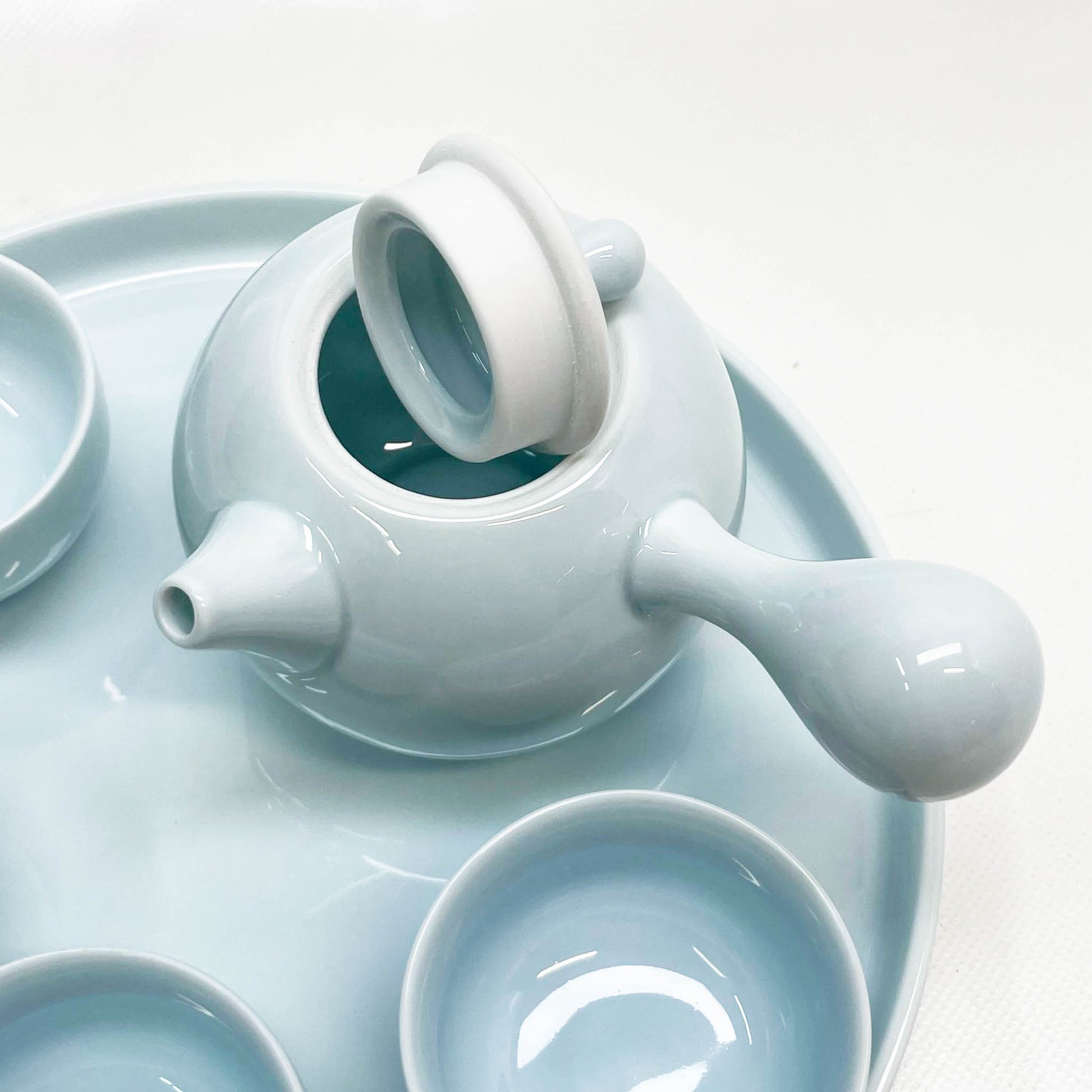 Chaiblend Teeset, 6-teilig, Teekanne, 4 Tassen, Servierteller, Baby Blau, stilvolles Design, ideal für Teeliebhaber.