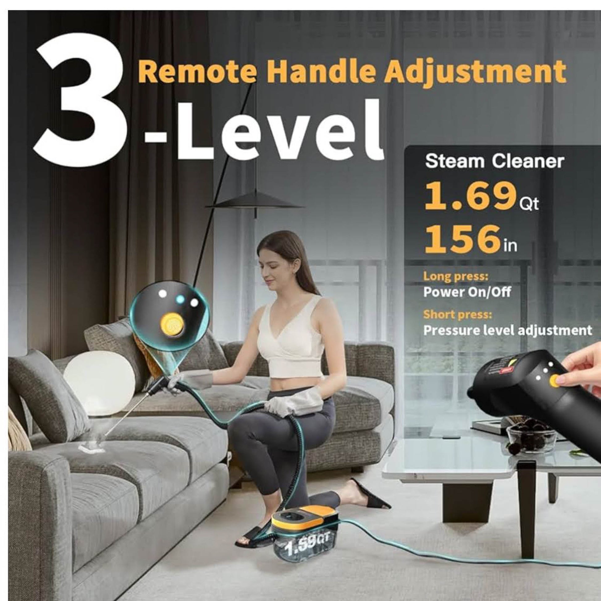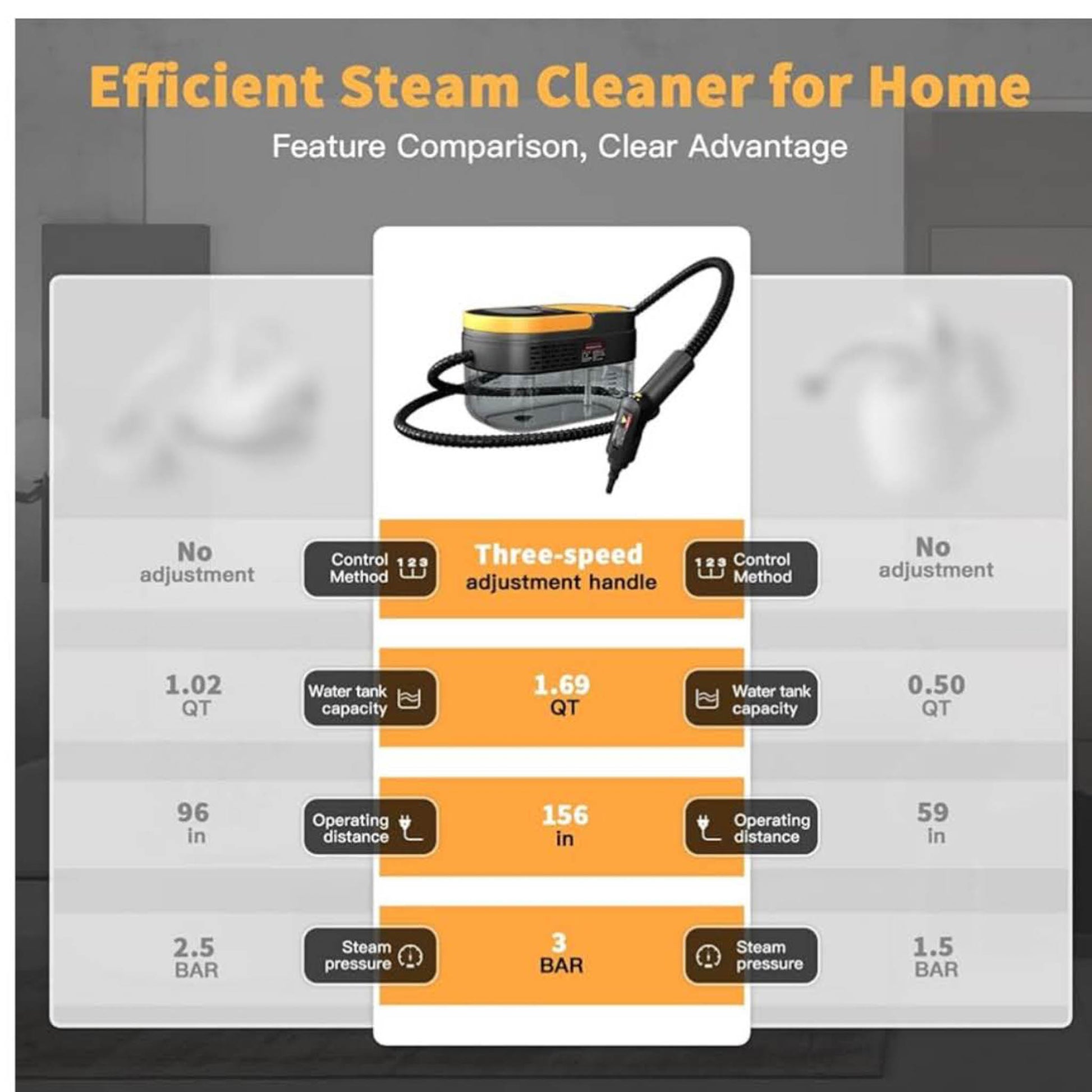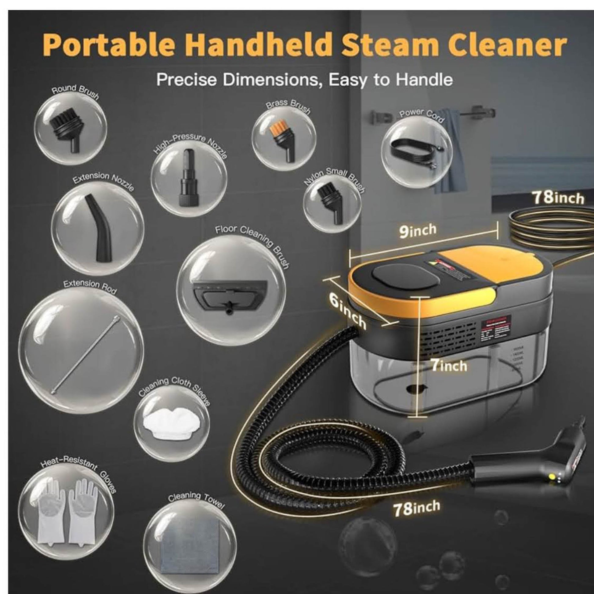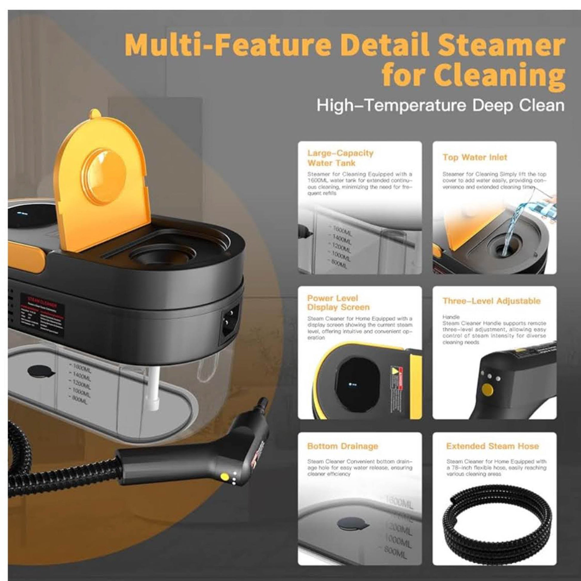 Gautye Dampfreiniger, Handgerät, 3-stufiger Griff, 15s Aufheizzeit, 1,6L Tank, 11 Zubehörteile, ideal für Boden, Küche, Fenster, Badezimmer, Autos.