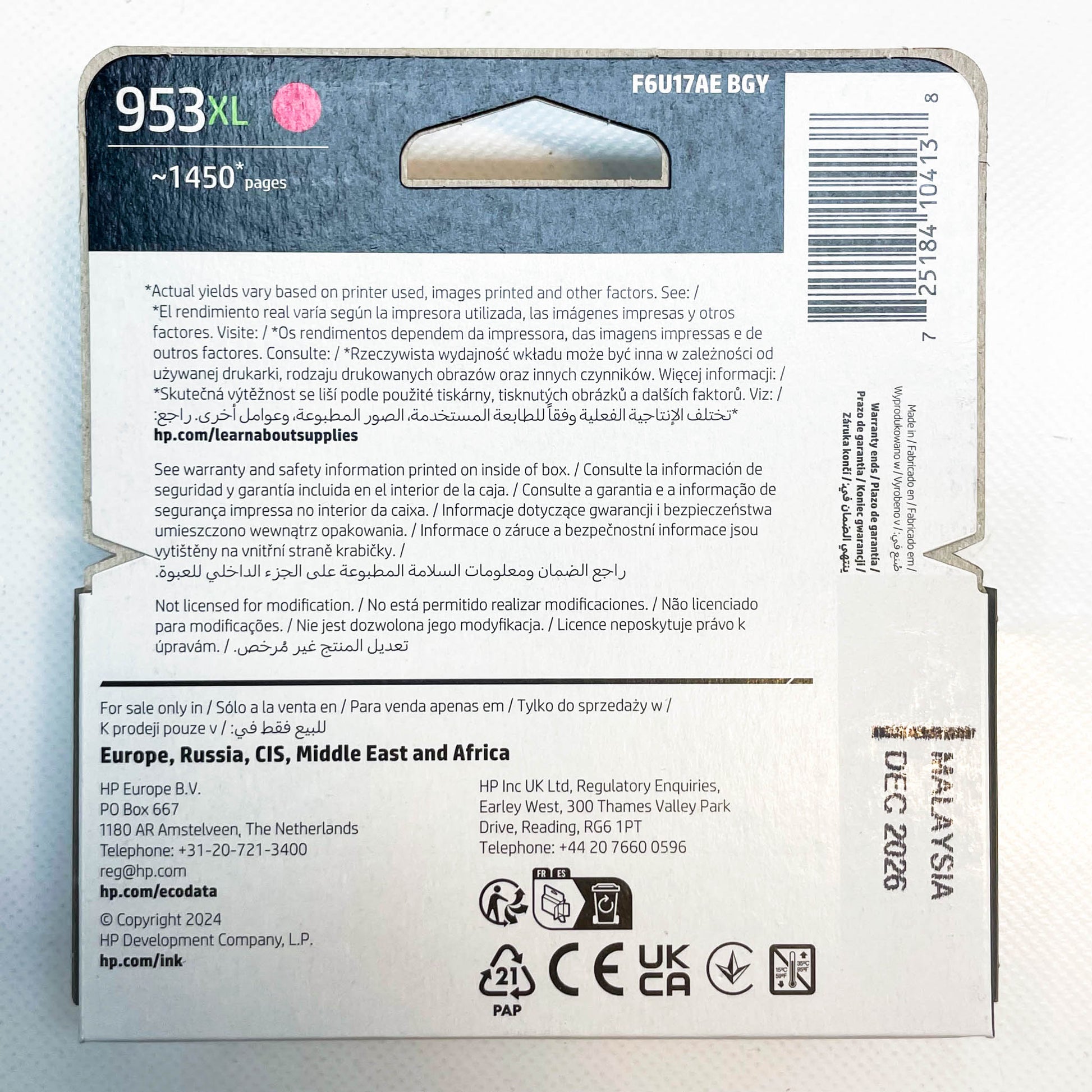 HP 953XL, Druckerpatrone, hohe Kapazität, Magenta, Einzelpackung, ideal für hochwertige Drucke.