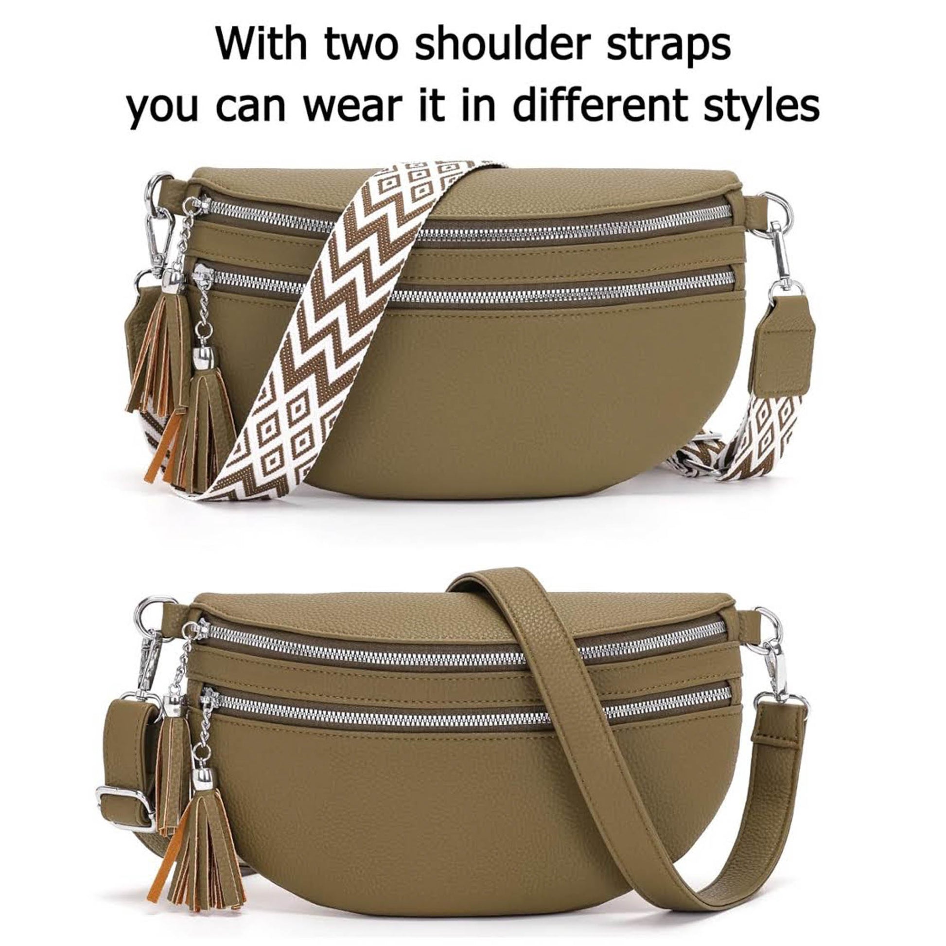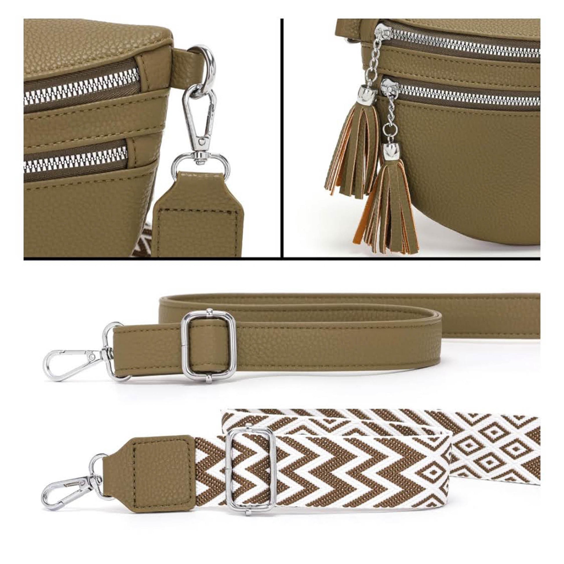 LANXINGLUO Bauchtasche, Crossbody Bag, mittelgroß, Graugrün, mit Kreditkartenfach, 2 Schultergurten