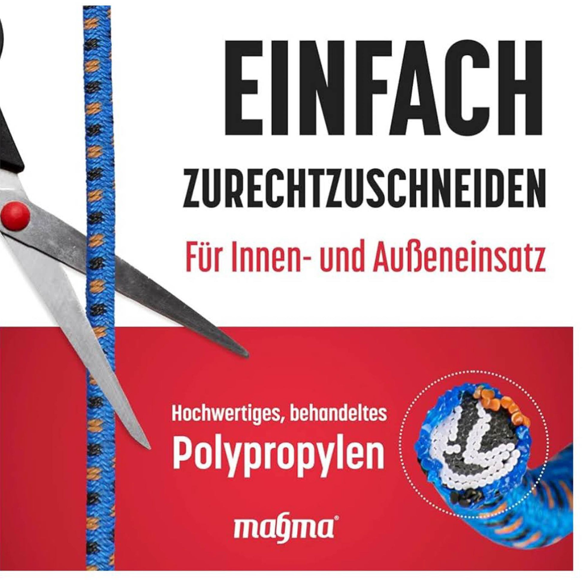 MAGMA Bungee-Seil 8mm, 50m, elastisches Gummiseil für Schwimmbadabdeckungen, Angeln, Segeln, Camping, blau.