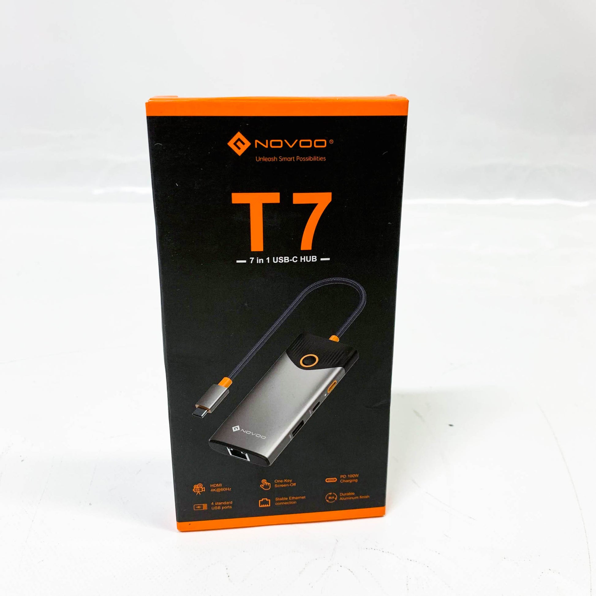 NOVOO USB C Hub 7-in-1, 4K HDMI, Gigabit Ethernet, 4x USB, 100W PD, kompatibel mit MacBook, Surface, Dell und Typ C Geräten.