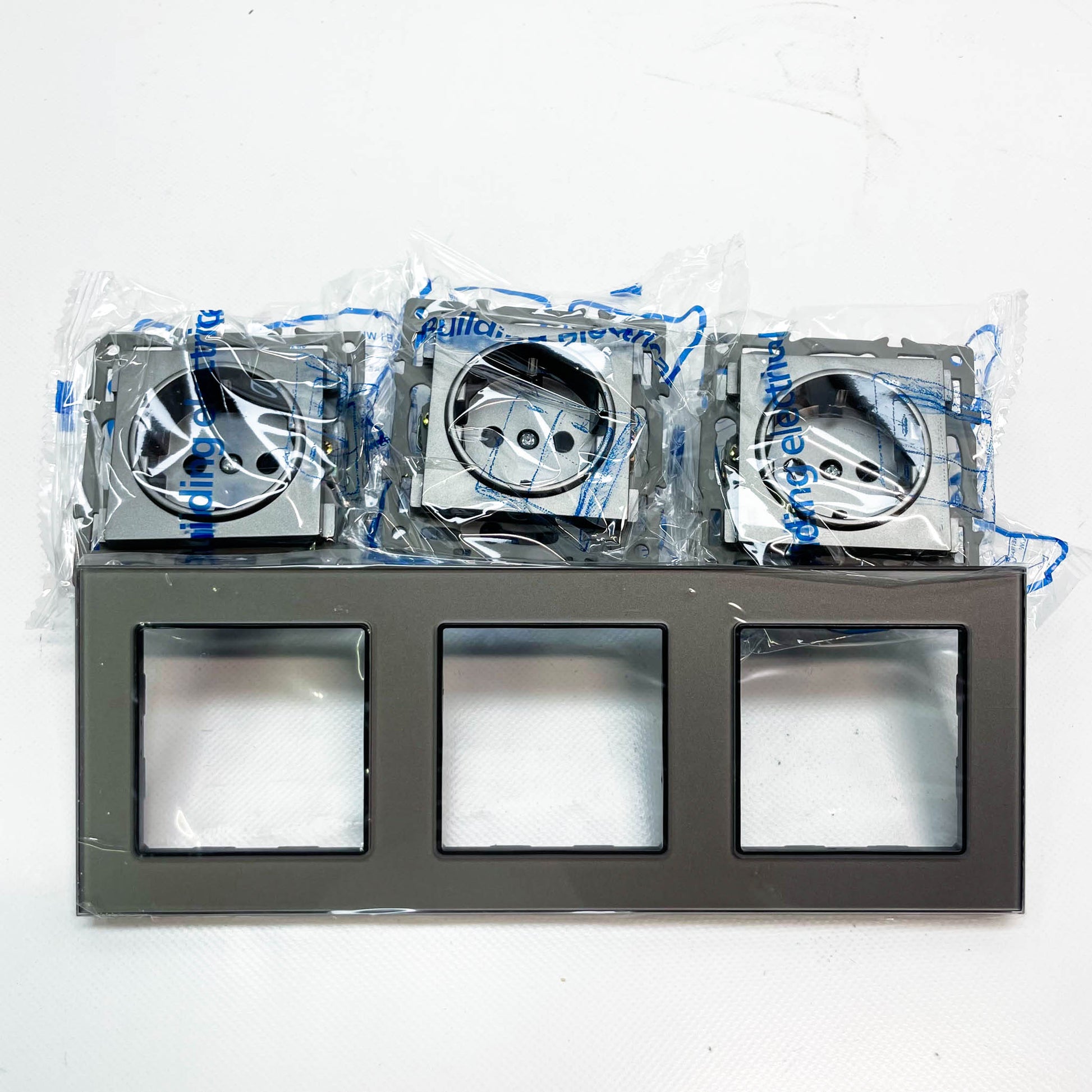 PANGTZEEN Schuko Steckdose 16A, Dreifach, Glasrahmen, Unterputz, grau, für Wohnzimmer, Schlafzimmer, Küche, Büro.