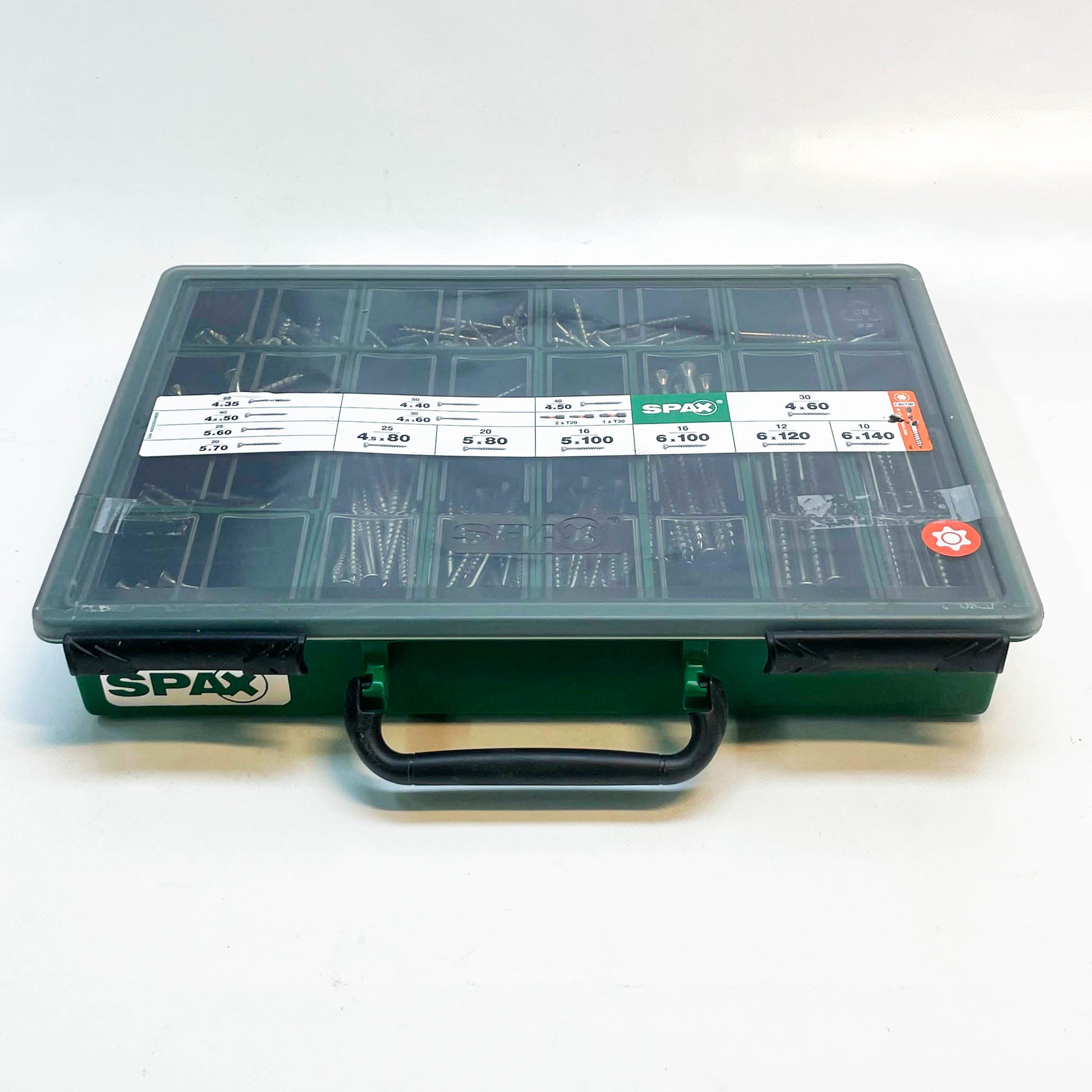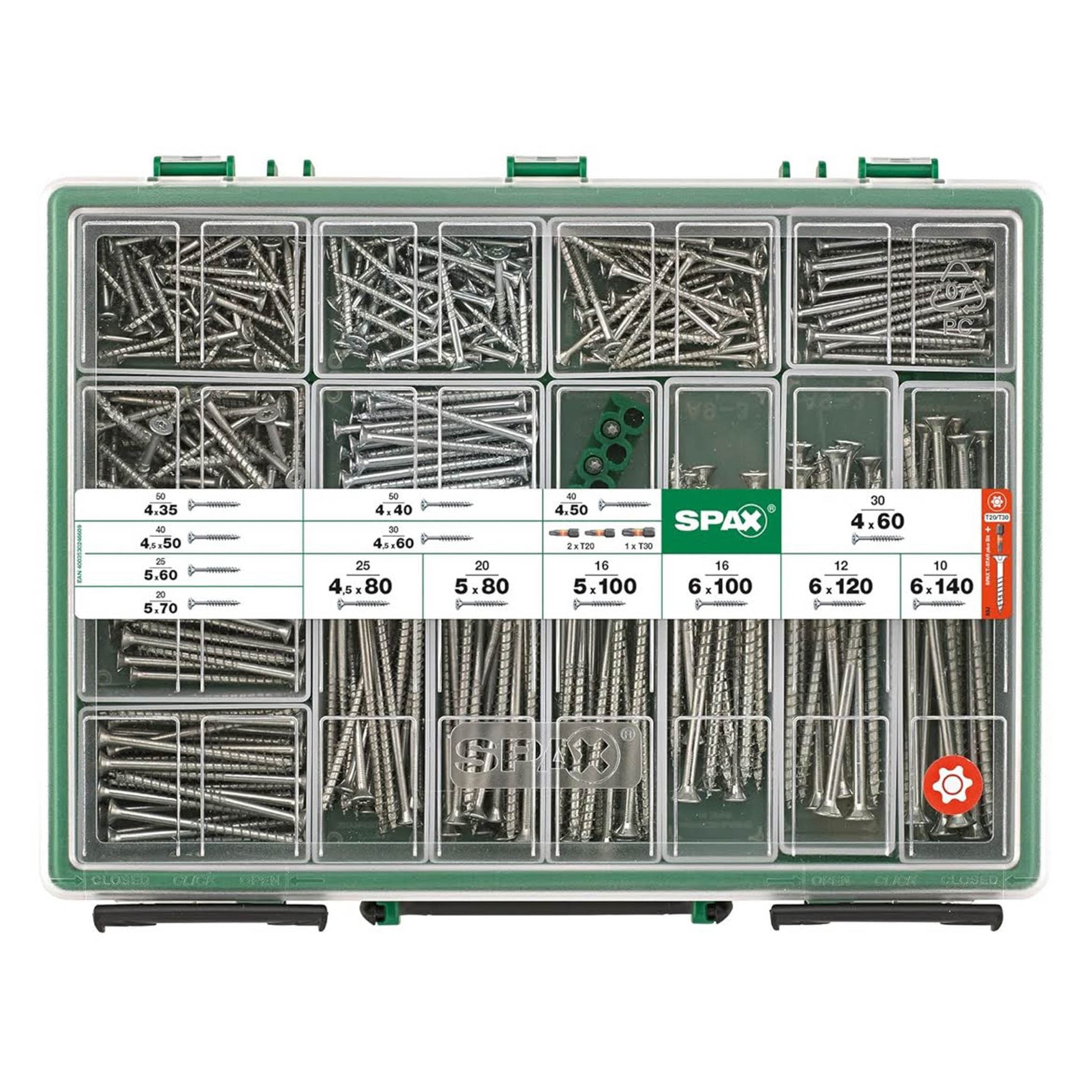 SPAX Sortimentskoffer groß, Schrauben-Set, 14 Abmessungen, 384 Schrauben + 3 Bits, Senkkopf, T-STAR plus, WIROX