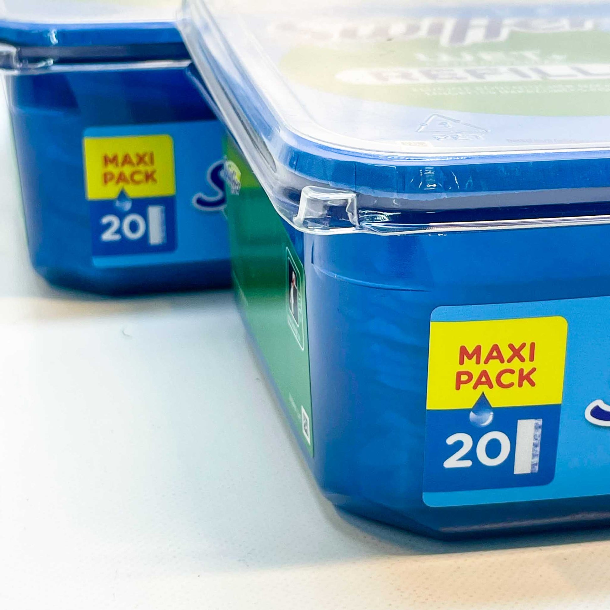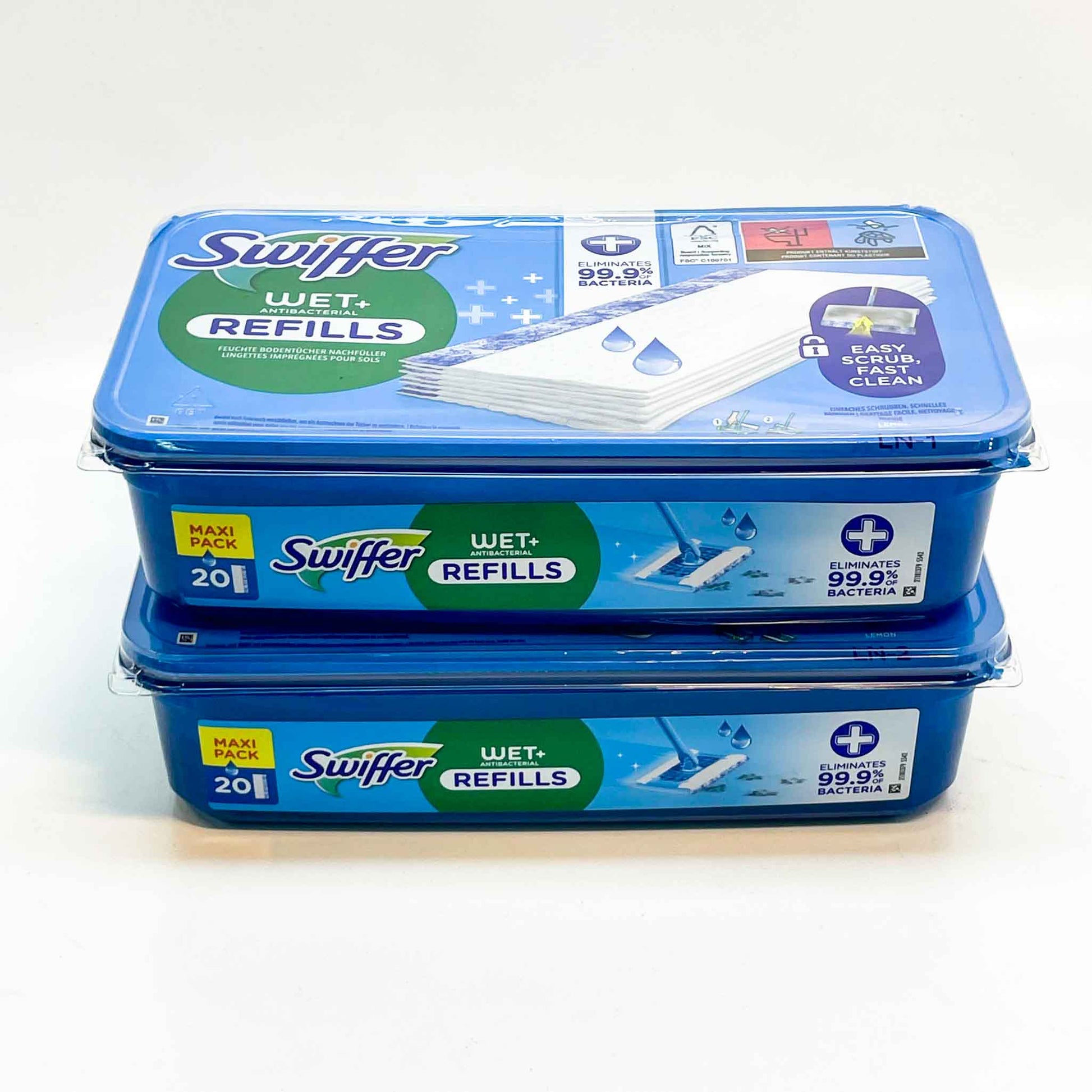 Swiffer Wet+ Antibakteriell, Nachfüllpack, feuchte Bodentücher, 2 x 20 Stück, effektiv gegen Bakterien, einfache Anwendung.