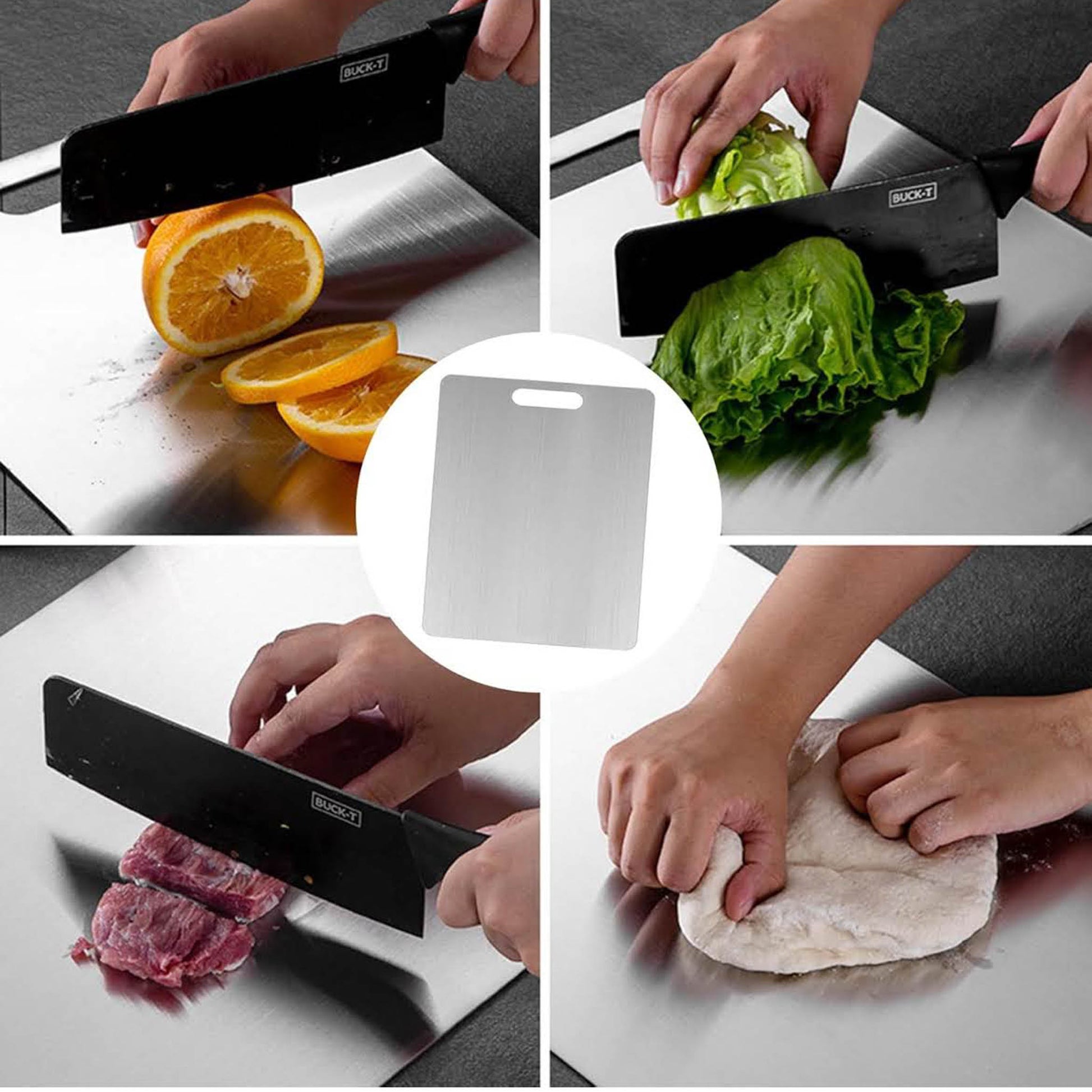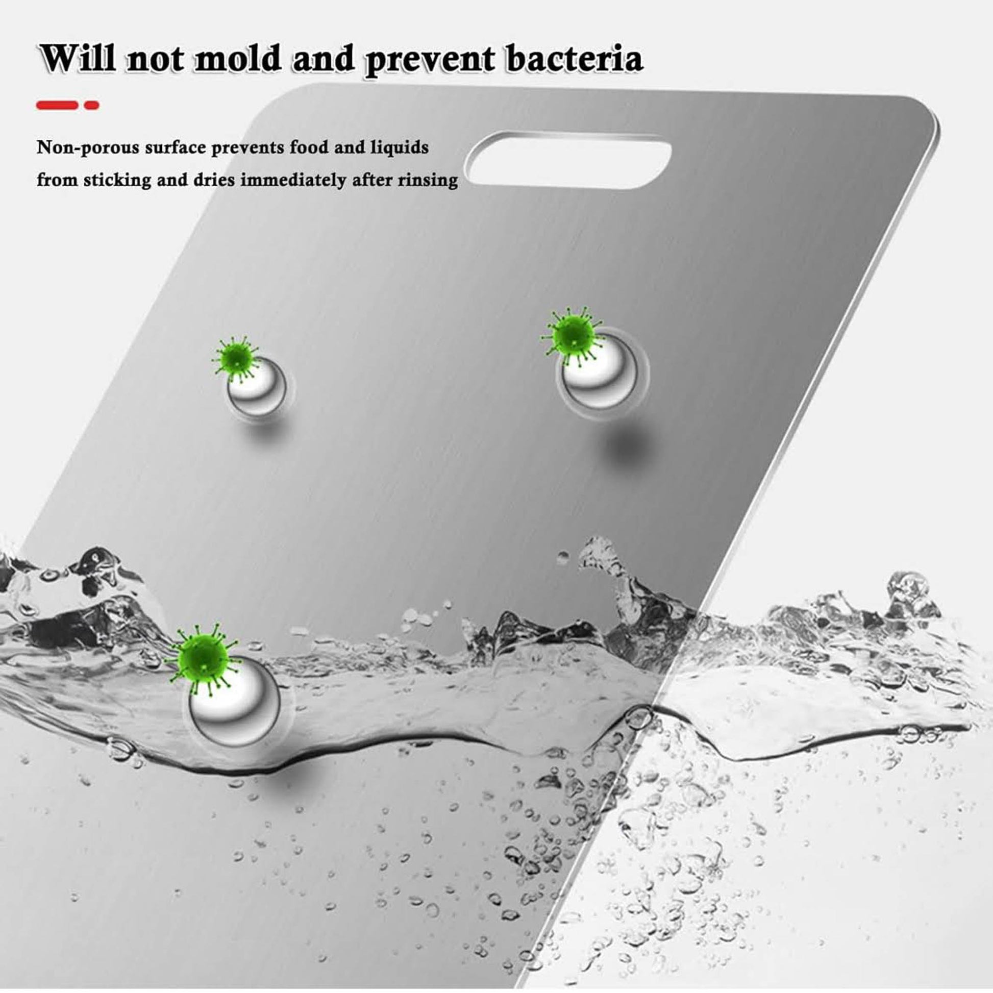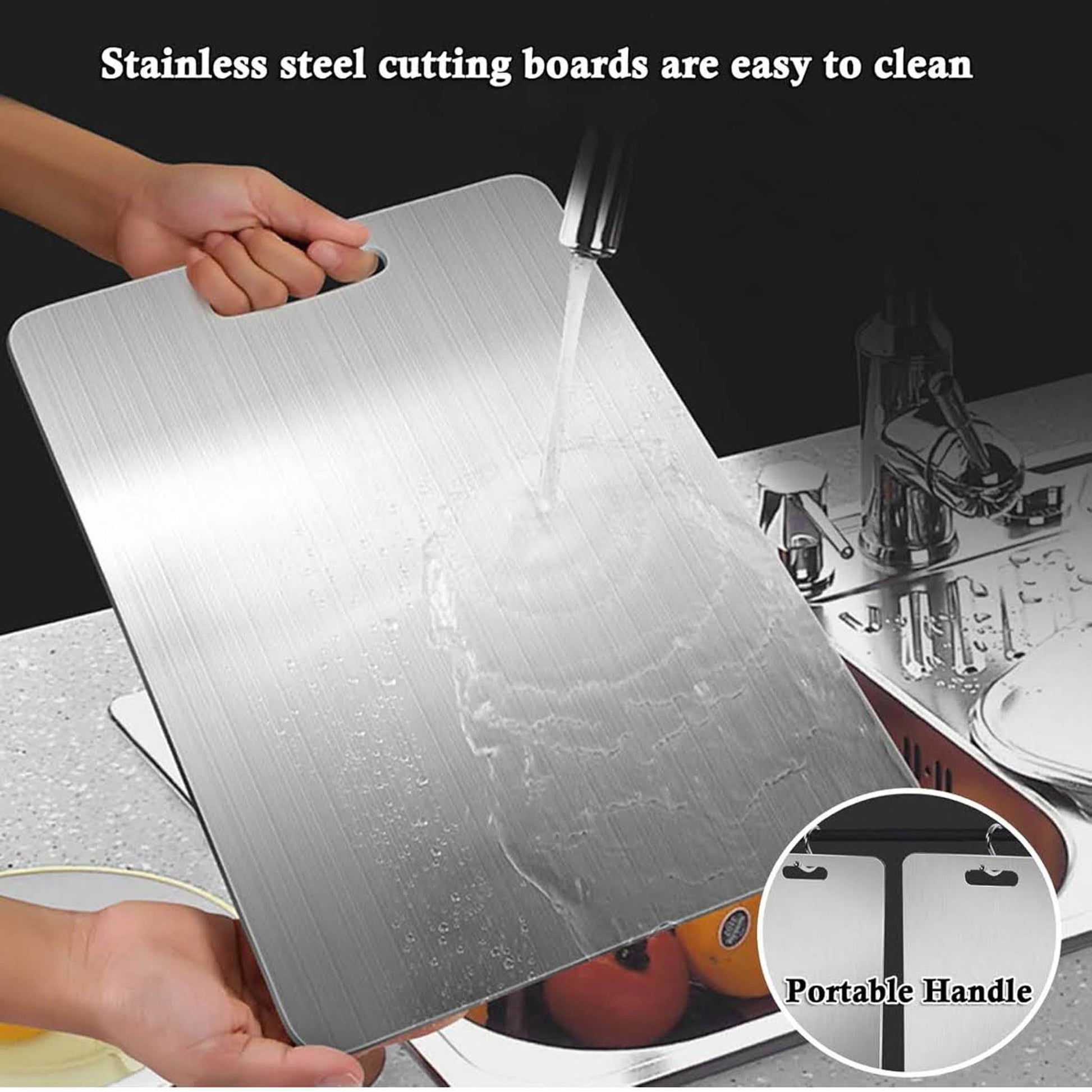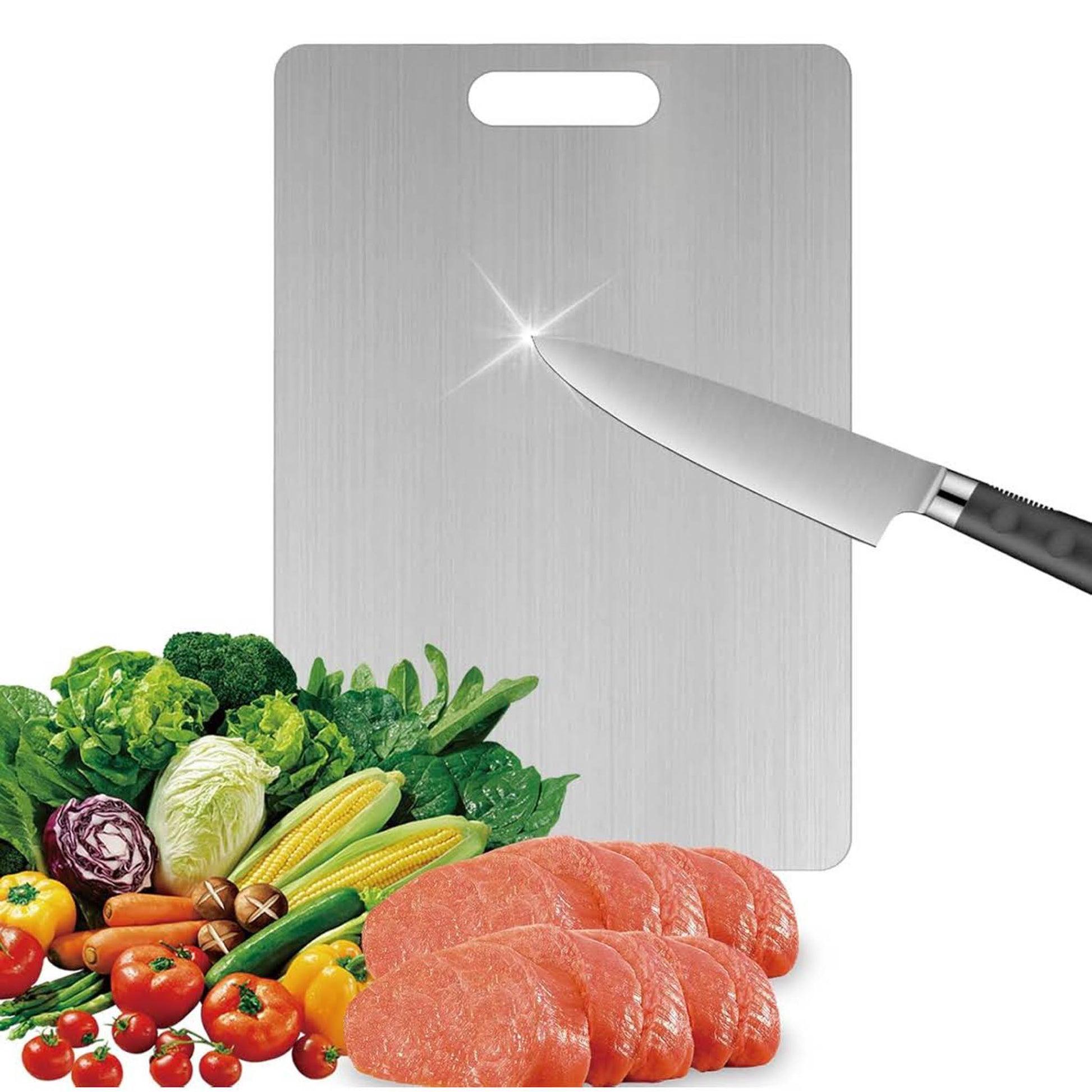 Titan Schneidebrett, Edelstahl, rutschfest, antibakteriell, spülmaschinenfest, mit Aufhängelöchern, ideal für Fleisch, Gemüse, Obst.
