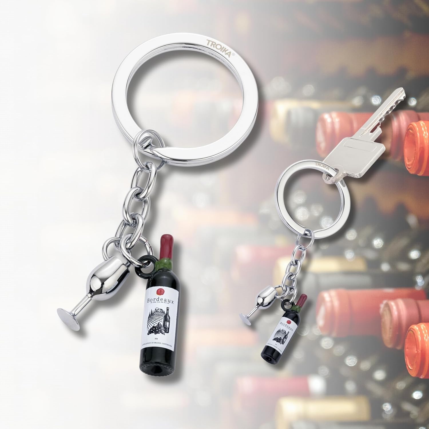 TROIKA BORDEAUX Schlüsselanhänger, Metallguss, glänzend, mit Weinflasche und Weinglas, Grün/Silber, stilvoll und funktional.