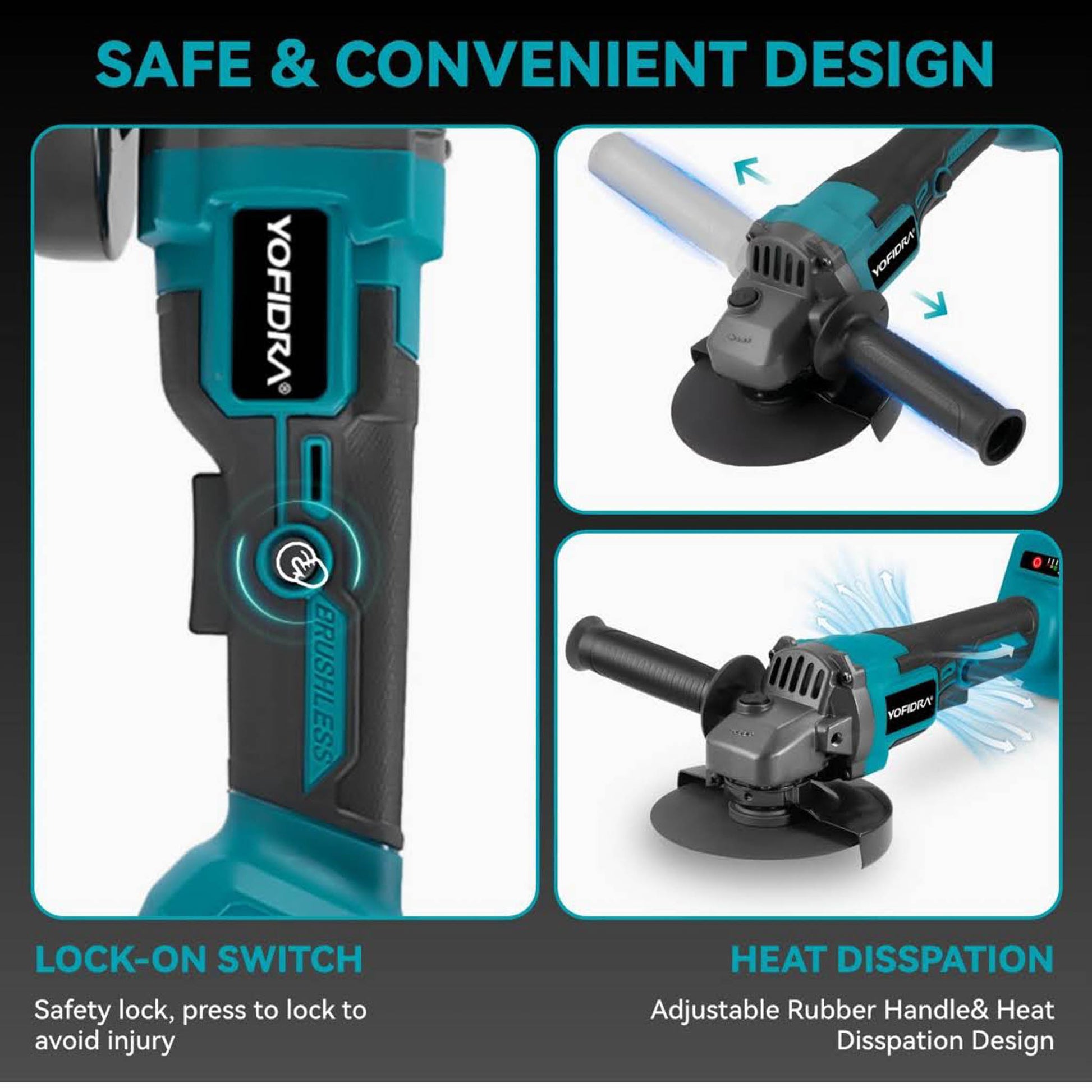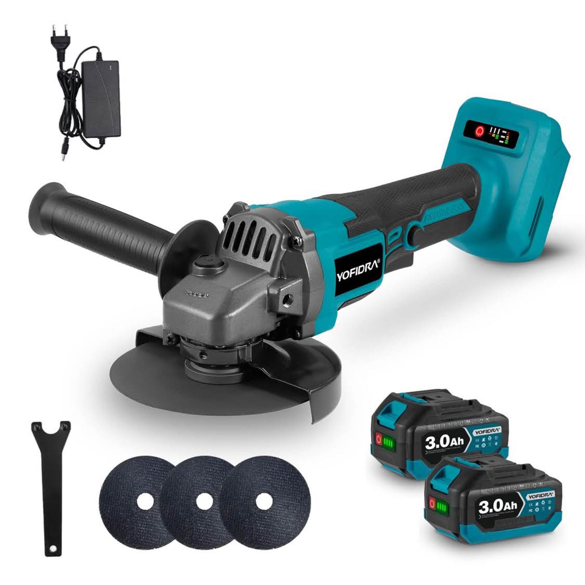 Yofidra 125mm Akku Winkelschleifer, 3 Gang, 21V, 5600rpm, inkl. 2x 3.0Ah Akku, 3 Trennscheiben, ideal für Metall, Fliesen, Stein.