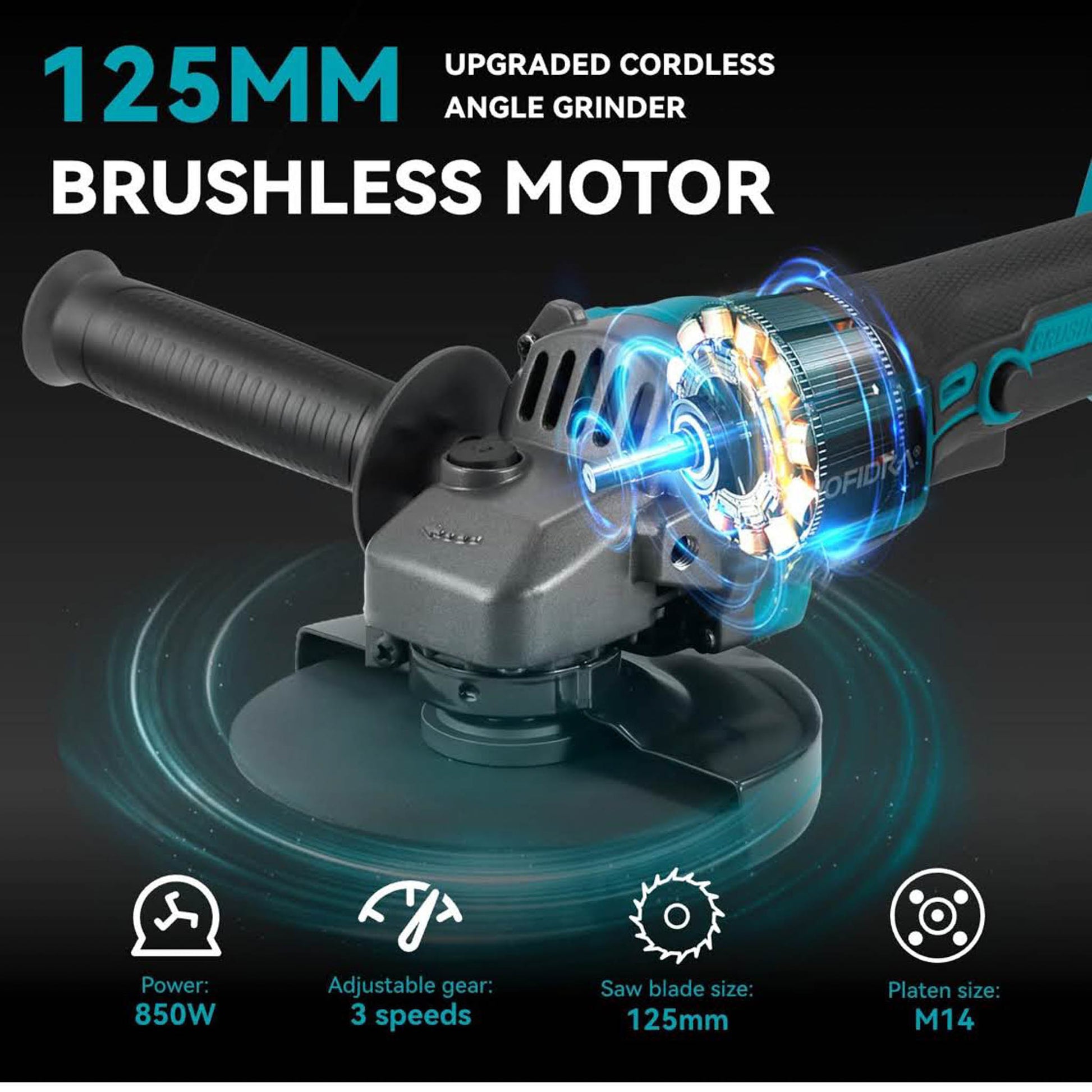Entdecken Sie die Vielseitigkeit und Leistungsstärke des 125mm Akku Winkelschleifers. Mit einem bürstenlosen Motor und einer Drehzahl von bis zu 5600 U/min ist dieser Winkelschleifer ideal für Schneid- und Schleifarbeiten an Metall, Fliesen und Stein. Das Set enthält zwei leistungsstarke 3.0Ah Akkus und drei Trennscheiben, die Ihnen die Freiheit geben, überall zu arbeiten, ohne an eine Steckdose gebunden zu sein.
