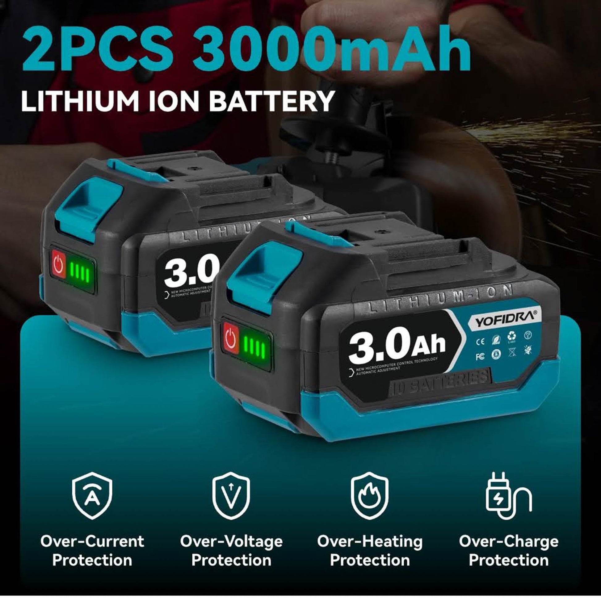 - Inklusive zwei 3.0Ah Akkus für längere Einsatzzeiten